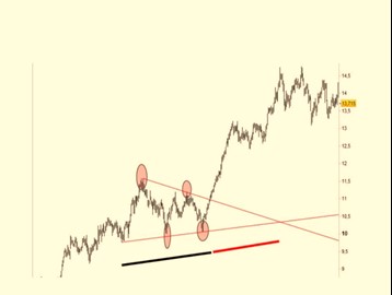 • Cena musi poruszać się wewnątrz trójkąta przez co najmniej dwie trzecie drogi w górę (od początku trójkąta do jego wierzchołka), a następnie zacząć wychodzić z trójkąta.