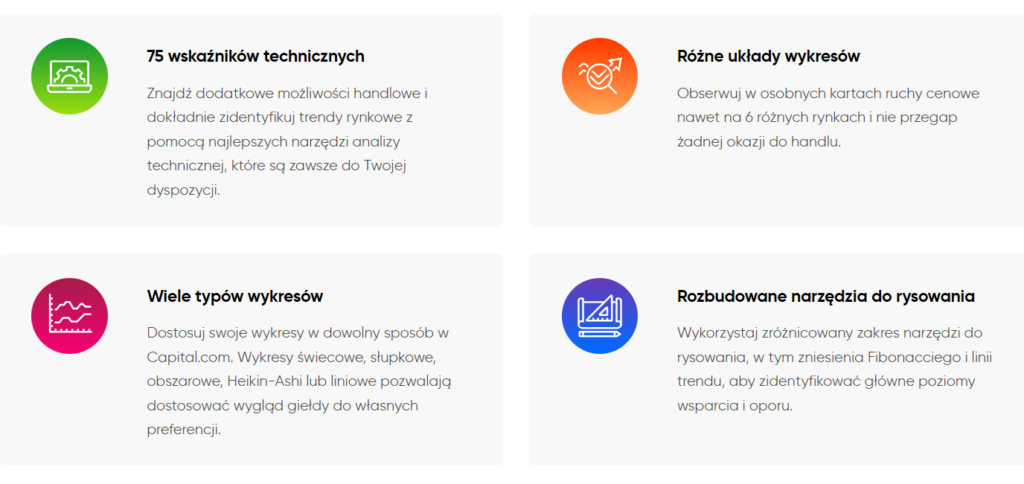 Capital.com dąży do usunięcia barier wstępu do handlu, oferując konkurencyjne ceny oraz przejrzyste materiały edukacyjne. Platforma jest wyposażona w zaawansowane funkcje, takie jak dane z rynków w czasie rzeczywistym, narzędzia do analizy wykresów oraz dynamiczną aplikację mobilną, która umożliwia handel w dowolnym miejscu i czasie. Broker specjalizuje się wyłącznie w kontraktach CFD, co oznacza, że inwestorzy handlują instrumentami finansowymi bez fizycznego posiadania aktywów.