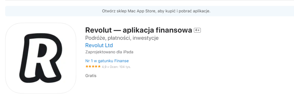 Revolut to brytyjski fintech oferujący elastyczne rozwiązania finansowe, w tym wymianę walut i inwestycje. Aplikacja cieszy się pozytywnymi opiniami użytkowników.