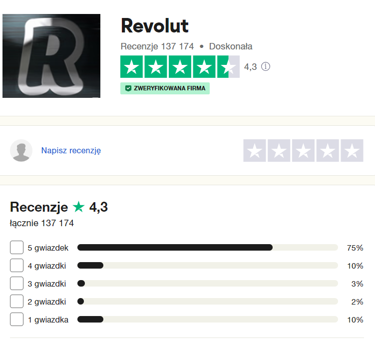⚠️ Wnioski: Choć Revolut działa świetnie technicznie, to największym problemem są blokady kont (biometryka, selfie) oraz słabe wsparcie, o czym często wspominają klienci.