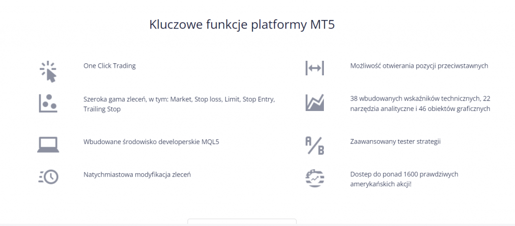 | ✅ Profesjonalne platformy transakcyjne (MetaTrader i TradingView) | ❌ Ograniczona obsługa klienta |