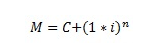 Przykład: Zakładamy, że posiadamy 100 dolarów i chcemy poznać ich wartość za 6 miesięcy, przy stopie procentowej 5% miesięcznie. Według wzoru, wynik wynosi 130 dolarów.