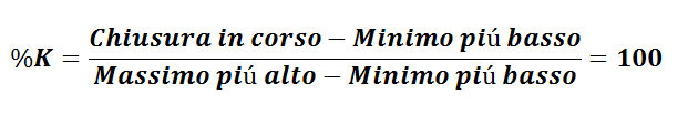 Sam George Lane używał go w precyzyjnym celu oceny odległości między słupkami/świecami zbliżającymi się do minimum lub maksimum interwału czasowego. Nie są wymagane żadne specjalne obliczenia, ponieważ platformy handlowe wykonują je automatycznie. Wzór na obliczenie oscylatora stochastycznego jest następujący: