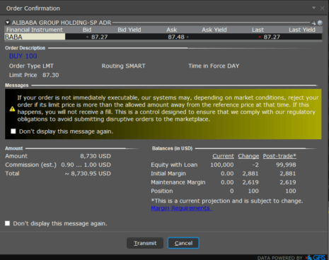 Potwierdź swoje zamówienie: Jeśli jesteś zadowolony ze szczegółów swojego zamówienia, możesz sfinalizować zakup. Twoje zamówienie zostanie następnie przetworzone i jeśli się powiedzie, akcje Alibaba zostaną dodane do Twojego konta.
