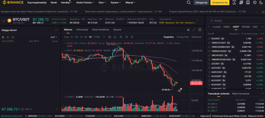 Binance działa odwrotnie — to największy katalog kryptowalut spośród dużych giełd. Setki altcoinów, duża płynność, szybkie dodawanie nowych projektów i dostęp do trendów, zanim jeszcze staną się mainstreamowe.