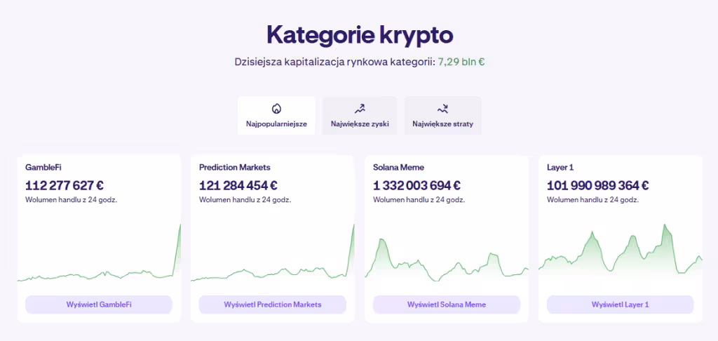 Tutaj lista projektów jest mniejsza, ale dobrze przefiltrowana. Nie ma tu setek egzotycznych tokenów, a nowe kryptowaluty pojawiają się dopiero po solidnym sprawdzeniu projektu i płynności.