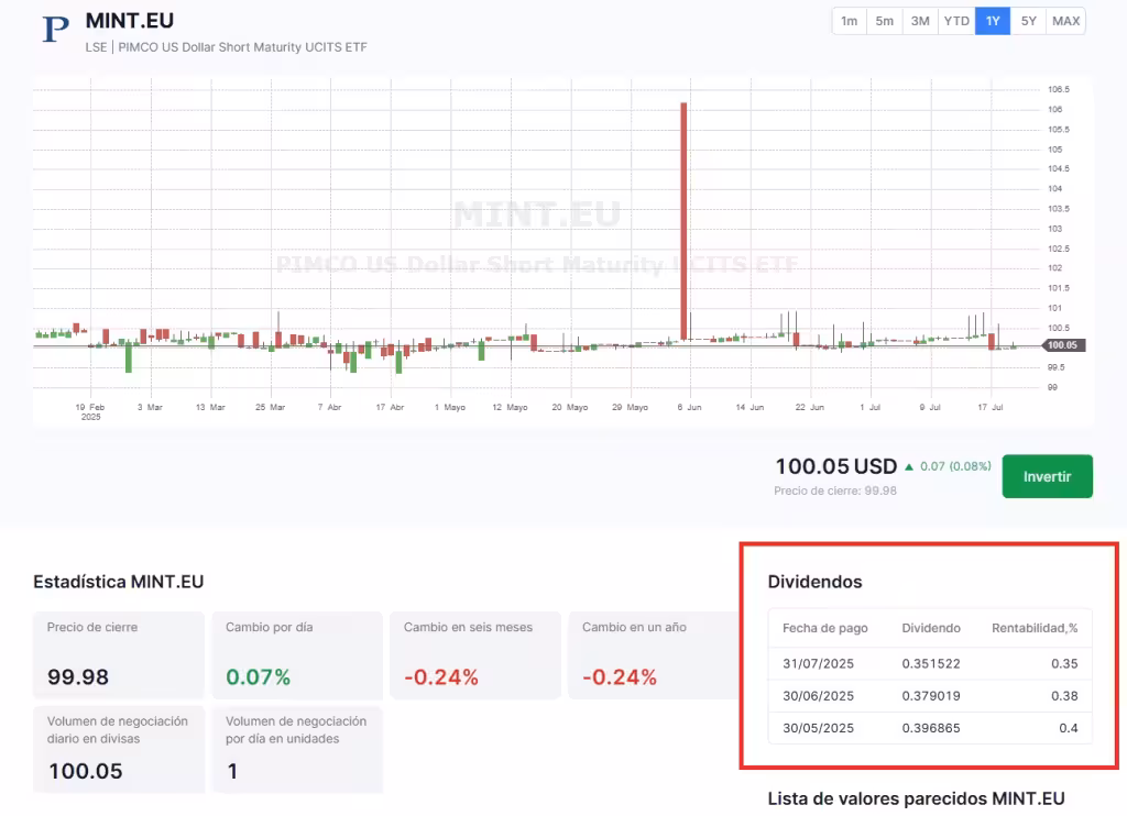 Choć długoterminowa stopa zwrotu jest niska, główną zaletą jest regularny przepływ gotówki. W ostatnich 12 miesiącach wypłacono ok. 4,85 USD na udział. To rozwiązanie dla portfeli szukających stabilnego, comiesięcznego dochodu w usd, bez ryzyka związanego z terminem zapadalności.