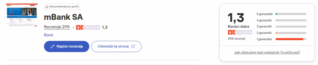 Na Trustpilocie mBank ma średnią ocenę 1,3/5, ale w Google Play — 4,7/5. Trudno o lepsze podsumowanie tej rozbieżności.