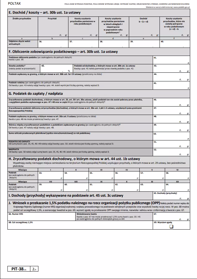 Zobaczmy teraz, jak krok po kroku wypełnić formularz PIT-38, uwzględniając zyski i straty z transakcji finansowych.