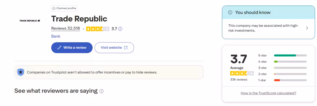Trade Republic wypada nieco lepiej – 3,7/5 przy 70% ocen 5-gwiazdkowych, co daje lekką przewagę w ogólnym zadowoleniu klientów.