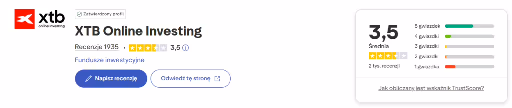 Według Trustpilot, XTB ma ocenę 3,5/5, z czego 62% opinii to 5 gwiazdek – użytkownicy chwalą platformę i obsługę klienta.