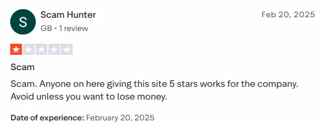 Problemy z wypłatami: Wielu użytkowników zgłasza trudności z wypłatą środków. Na Trustpilot firma otrzymała ocenę 1,3 na 5, z 84% negatywnych recenzji, w których użytkownicy skarżą się na brak możliwości wypłaty środków oraz brak odpowiedzi ze strony obsługi klienta.